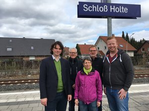 Der Bielefelder Landtags-Abgeordnete Matthi Bolte-Richter „checkte“ in dieser Woche mit den Grünen aus dieser Stadt den Bahnhof in Schloß Holte. „Dabei ging es nicht nur um optische Eindrücke, sondern auch um Funktion, Anbindung an Busverkehr, Barrierefreiheit, Wartehäuschen, attraktive Mobilität und vieles mehr“, sagt Matthi Bolte-Richter.